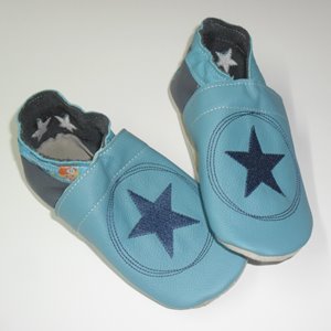 Puschen Gr. 28 türkis/denim Stern